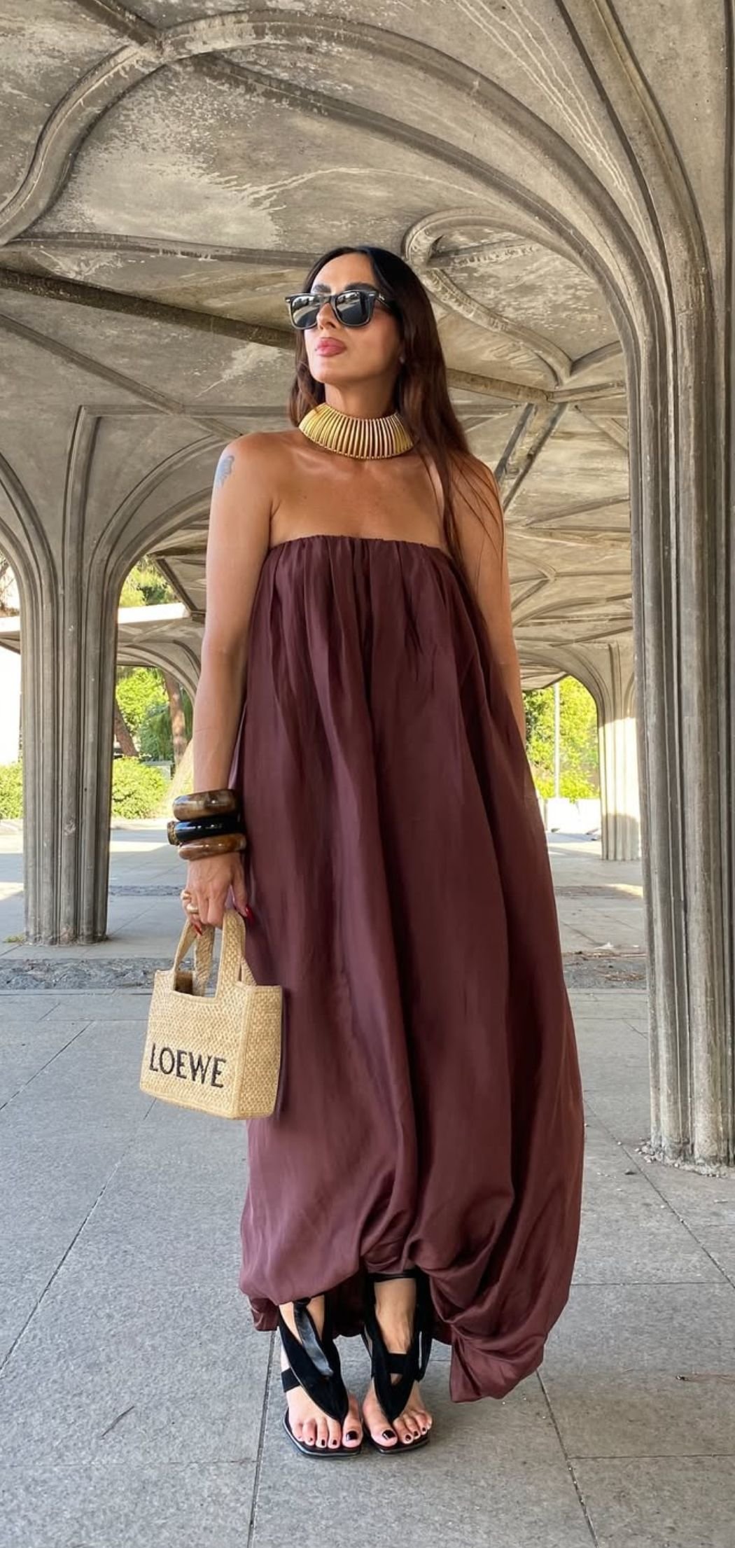 • Dica: Combine com cabelos ondulados, tranças e maquiagem em tons terrosos ou rosados.