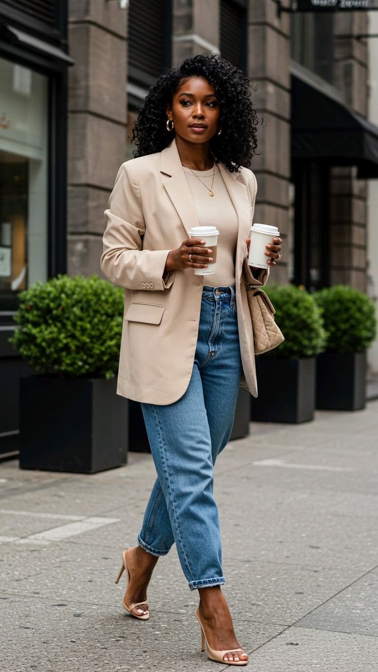 Esse é o “uniforme” oficial da mulher prática, e é justamente aqui que o acessório brilha. Sabe aquele look que parece simples demais? Ele ganha uma intenção de moda imediata quando você adiciona um colar rente ao pescoço.
