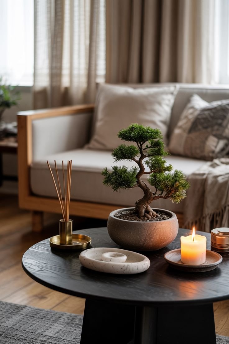 • Destacar um bonsai como peça central da decoração, transformando prateleiras, mesas de centro e aparadores em cenários cheios de charme.