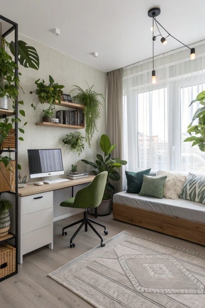 • Combine verde com elementos em madeira para reforçar a sensação de aconchego.