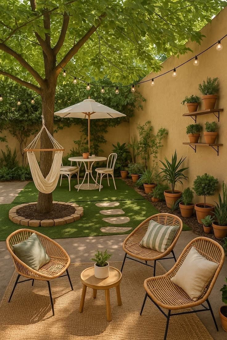 Na decoração de quintal pequeno, menos é mais. Evite excesso de objetos e foque em criar um ambiente leve, fluido e funcional.