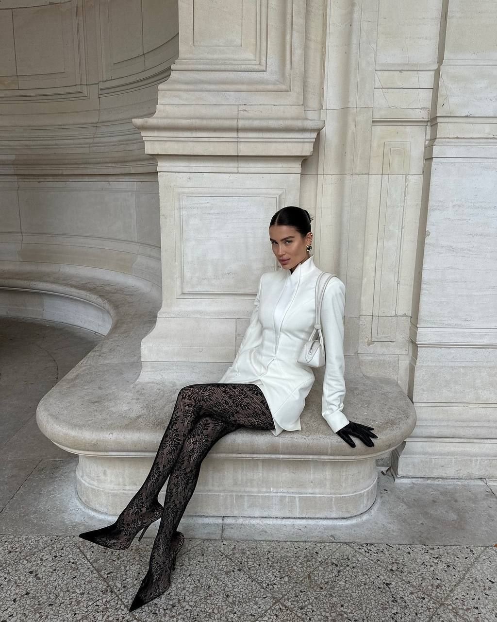 • Vestidos justos + meia opaca criam um contraste interessante entre forma e textura.
